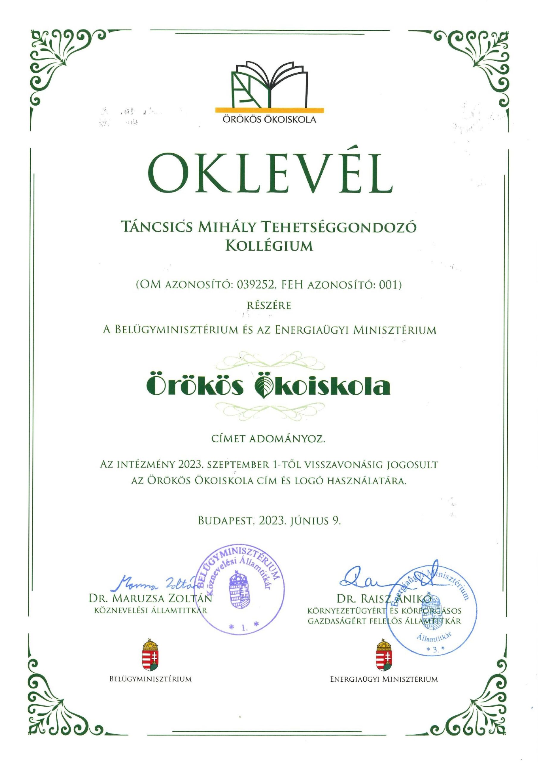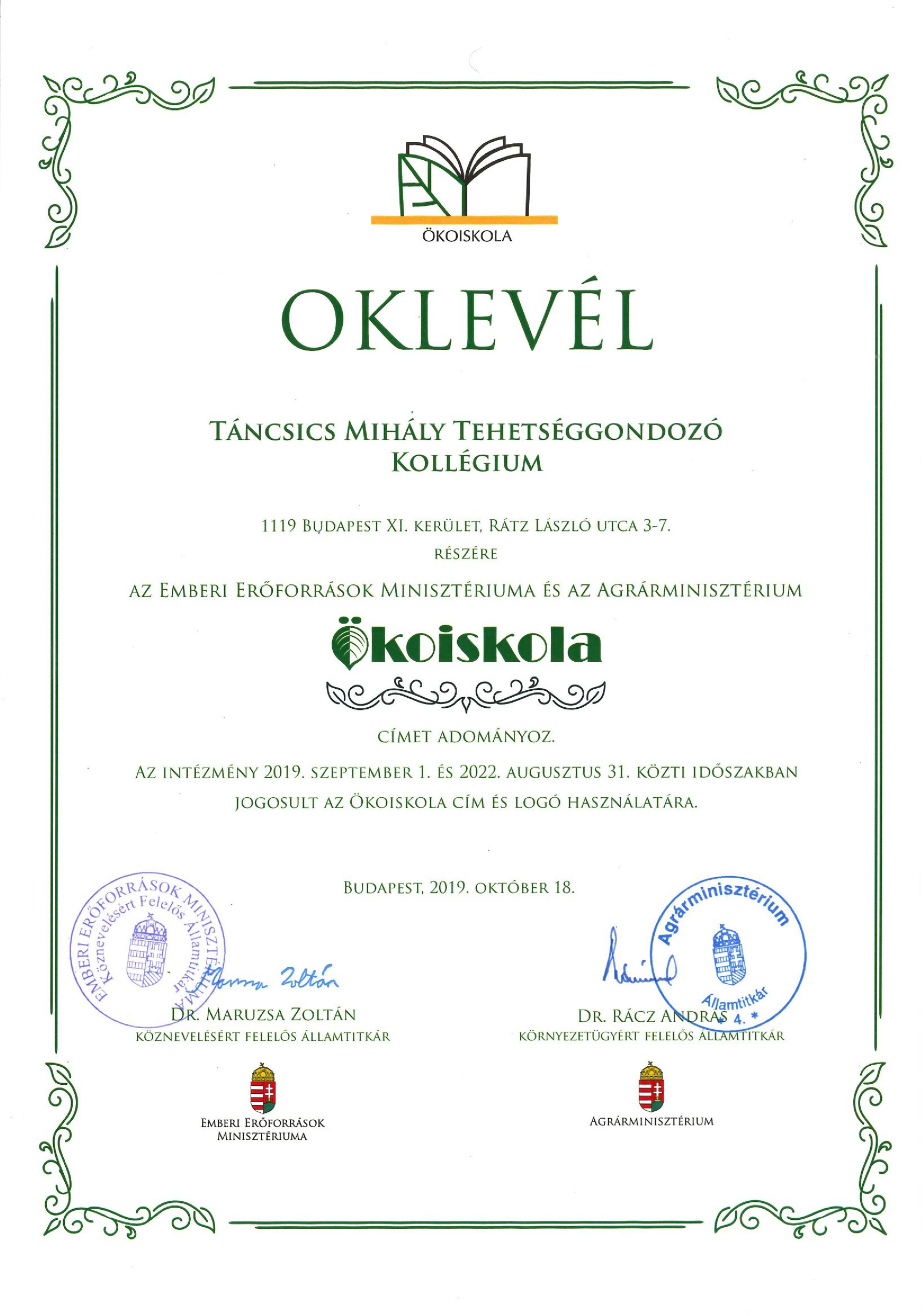 Katona Péter intézményvezető 2019. október 18-án a Balassi Intézet rendezvénytermében vehette át az ökoiskolai címet tanúsító oklevelet Maruzsa Zoltán köznevelésért felelős államtitkártól […]