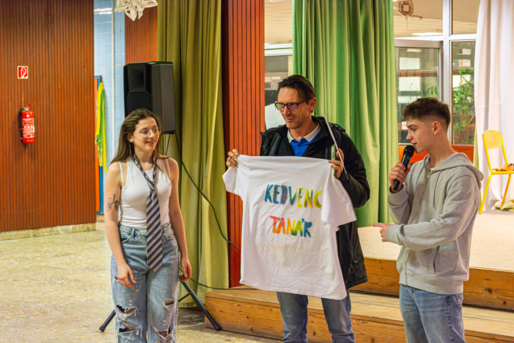Idén kicsit kevésbé volt bátor a tömeg, pedig a 90-es évek divatja volt a fő téma. Végül csak gazdára talált a főnyeremény is. Láttuk Stichet Pandával, míg a tanári kar idén is nagyon kitett magáért, egy komplett finom filteres teakészletet jelenítettek meg.
