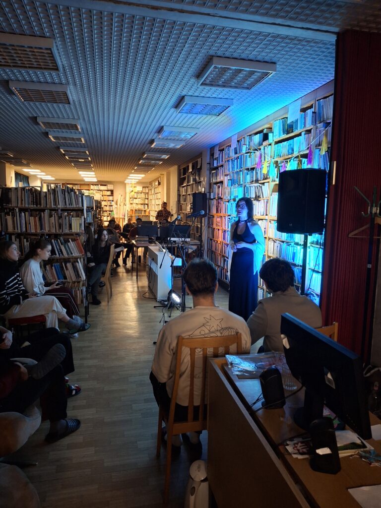 2026. január 14. szerda estére esett a választás, hogy a decemberben elmaradt karácsonyi estet bepótolhassuk. Sajnos az időjárás hűvössége miatt az ebédlő nem tűnt alkalmasnak az esemény megrendezésére, hiszen ki szeretne 2 órán keresztül fagyoskodni egy nagyobb légtérben? Végül a rendelkezésre álló termek közül a könyvtár tűnt legmegfelelőbbnek, hiszen mint kulturális tér, a hangulata, a könyvek illata alkalmas díszlet egy zenei-színházi esthez.
